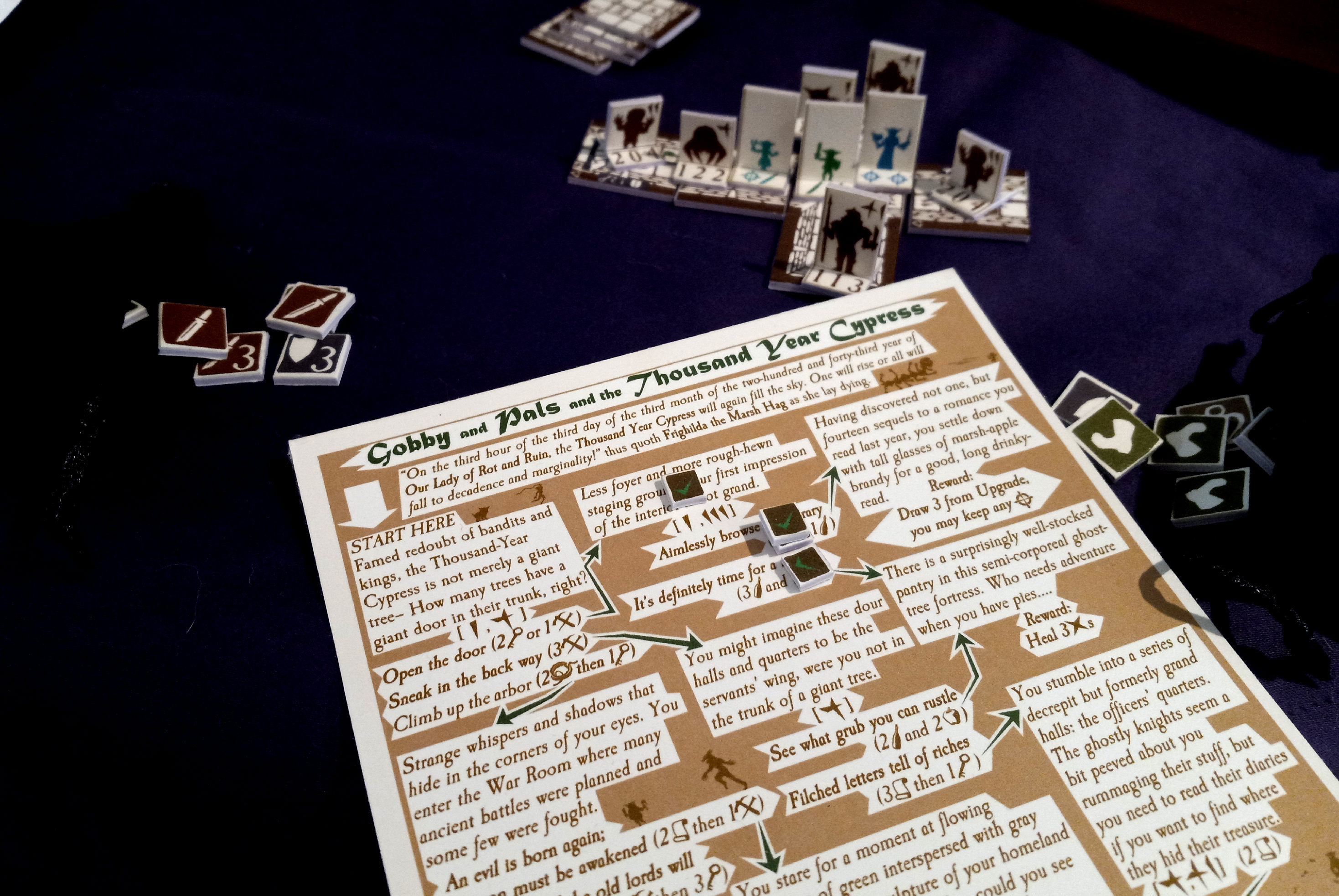 Gobby and Pals and the Thousand Year Cypress, the provided campaign, sees Gobby, our unlikely hero, (along with pals Goblinda, Gomina, Globbo, and Samuel) busting into an ancient tree-fortress, hoping for riches, but mostly finding ancient darkness.